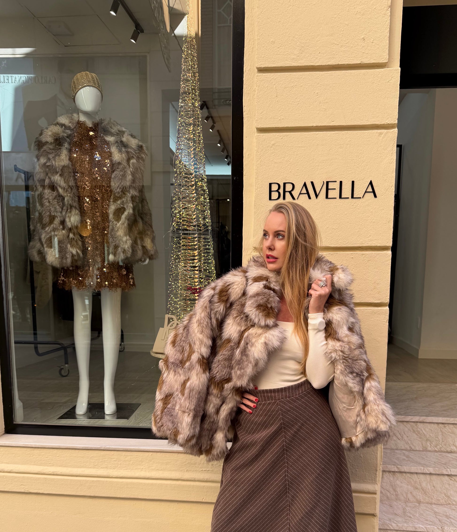 Abrigo pelo combinado blanco